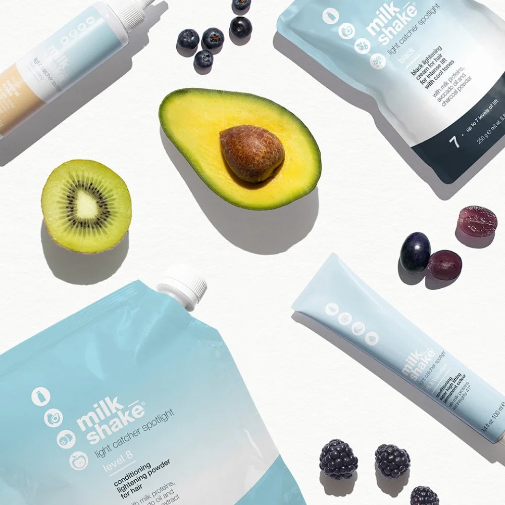 milk_shake light catcher light layers is a super high lift color cream for natural and color-treated hair to be applied to natural or color-treated base levels 6 to 9, giving touches of light and movement to blond hair. milk_shake light catcher soft light gives hair radiance with the combined action of 2 fundamental ingredients, milk proteins and the exclusive milk_shake ingredient Integrity 41®*