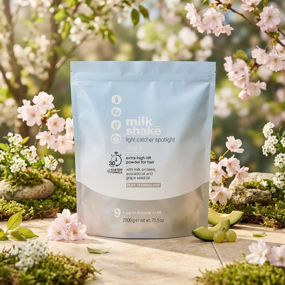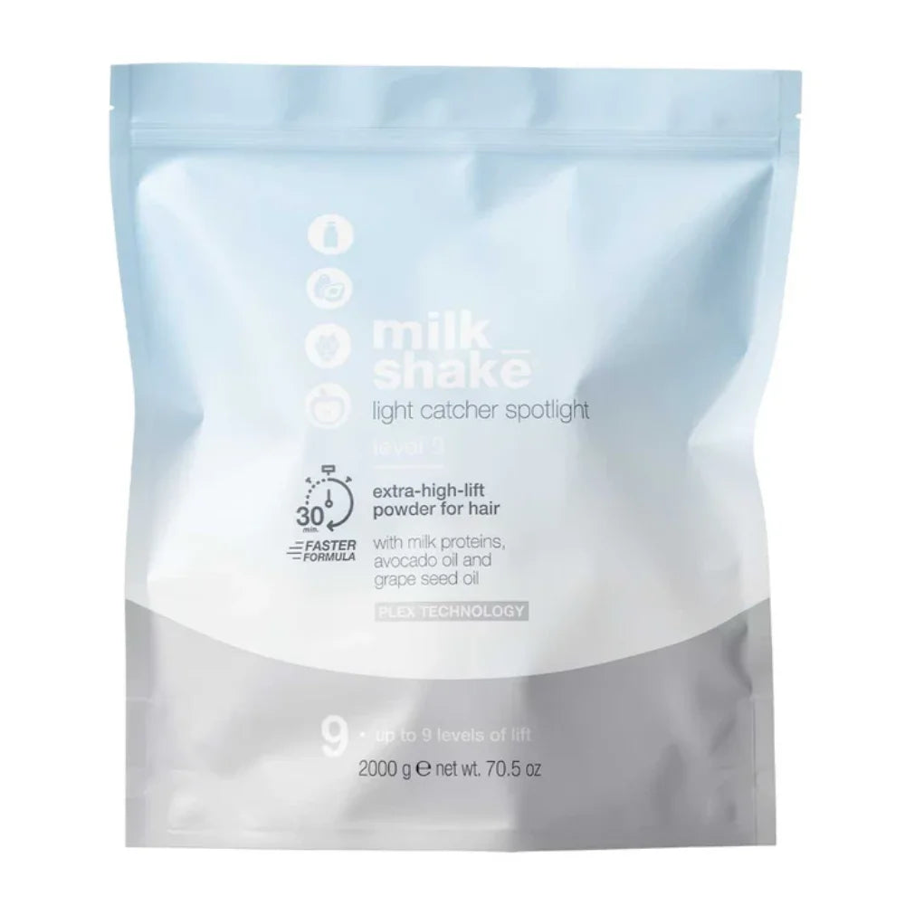 milk_shake light catcher spotlight level 9 is a lightening product suitable for all lightening techniques—can be used freehand or with supporting materials. A non-drip, no-swell formula that is easy to apply. Level 9 has a powerful lift to create intense, radiant blondes.
