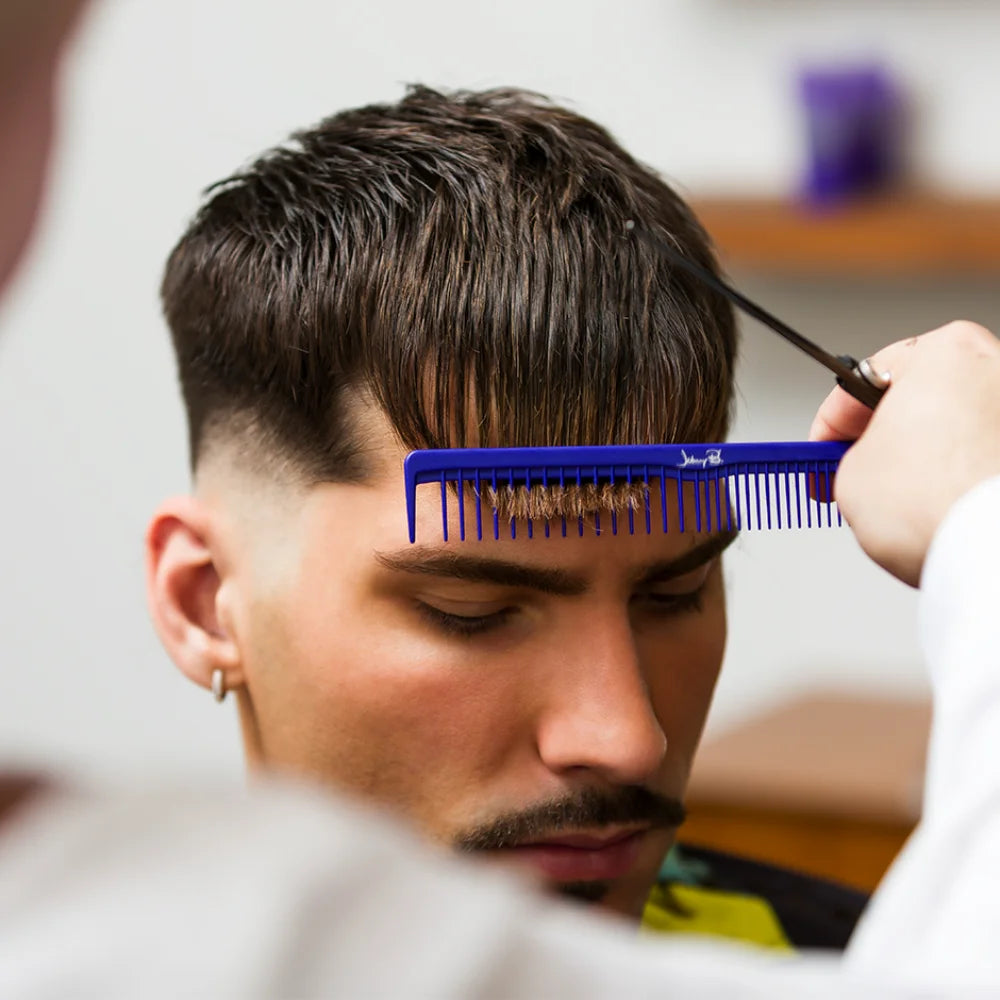 Our lightweight and multipurpose hair cutting comb is built-to-last, made from high quality carbon. Teeth are spaced in a fine formation as well as a standard formation for geometric cutting, sectioning, and parting on all hair types. Safe to use with temperatures up to 350˚, the comb’s anti-static properties help prevent flyaways when styling.