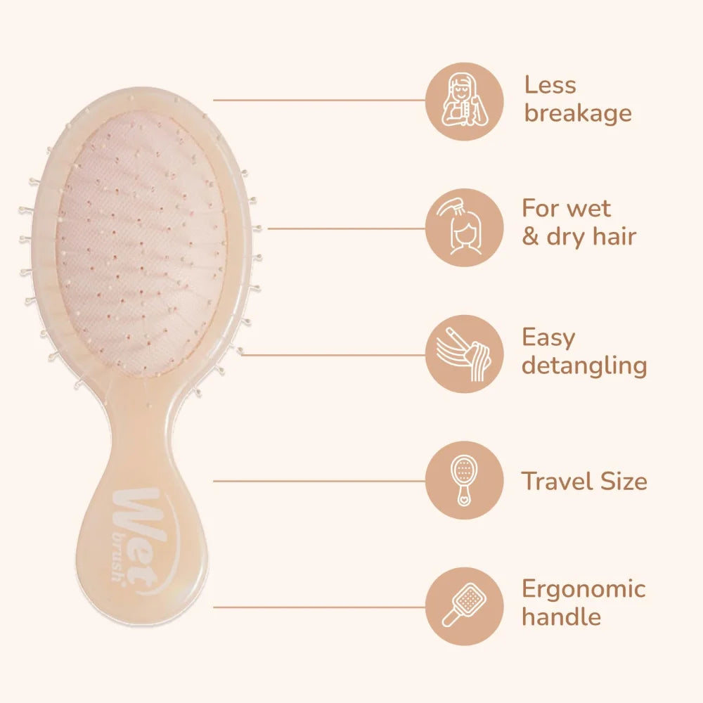 Wet Brush Mini Detangler Hair Brush, Cream (Iridescence Icon), Detangling Travel Hairbrush, Ultra-Soft IntelliFlex Bristles Glide Through Tangles with Ease, Pain-Free, All Hair Types, Limited Edition