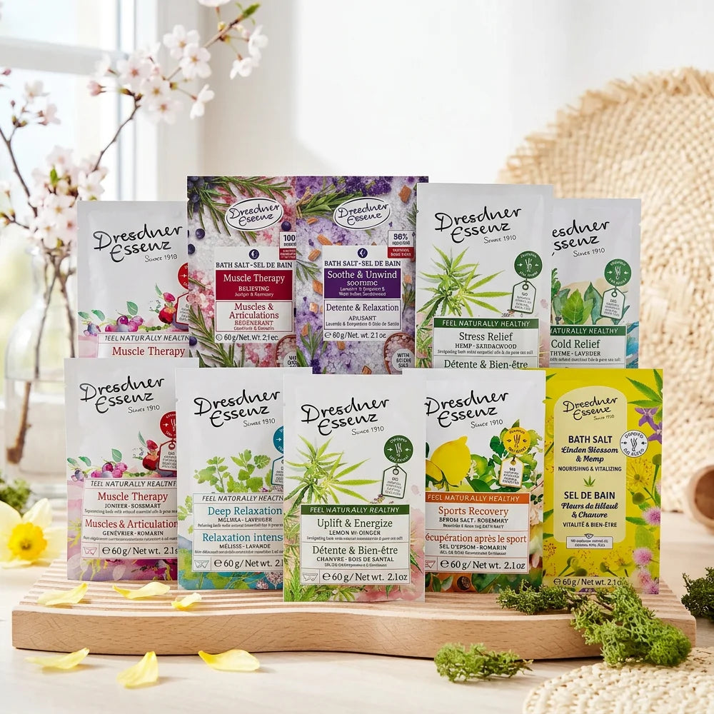 Since 1910, Dresdner Essenz has offered nourishing products to help achieve a harmonious balance of mind, body, and soul. Guided by the principles of aromatherapy, these premium bath salts are designed to promote and restore well-being using purely herbal products and high-quality, natural raw materials. Whether you are looking to unwind after a stressful day, revitalize your senses, or support muscle recovery, these essential oil-infused salts offer the ultimate luxury bath experience.