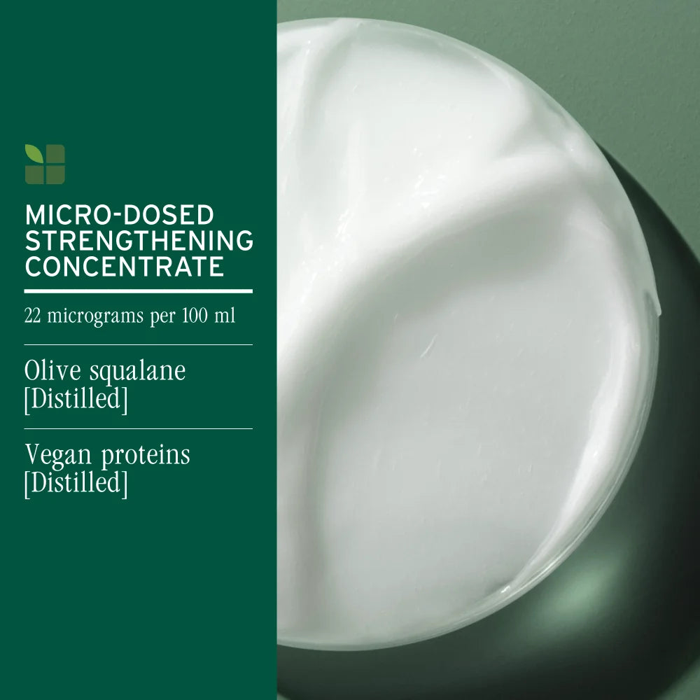 Vegan proteins strengthen hair while smoothing out split ends and improving elasticity.
