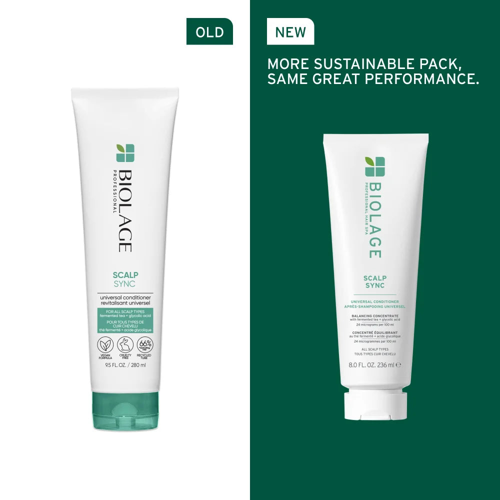 Discover Scalp Sync Universal Conditioner, infused and micro-dosed with fermented tea and glycolic acid for lightweight conditioning and a balanced scalp. Nourishes hair from root to tip.