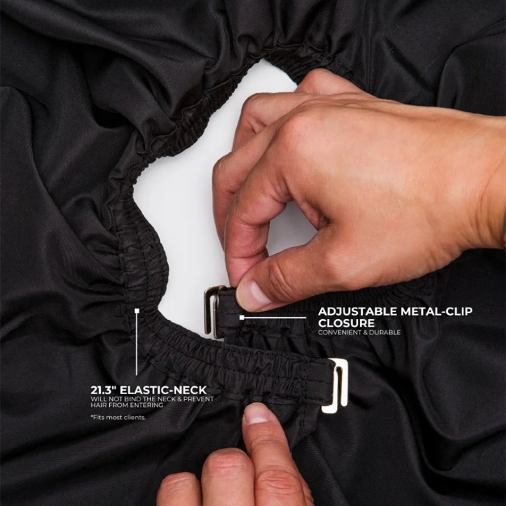 The most sought-out and reputable cutting cape in the market. Invest in client comfort with our ultra-lightweight and breathable material that sits comfortably around your client’s neck.