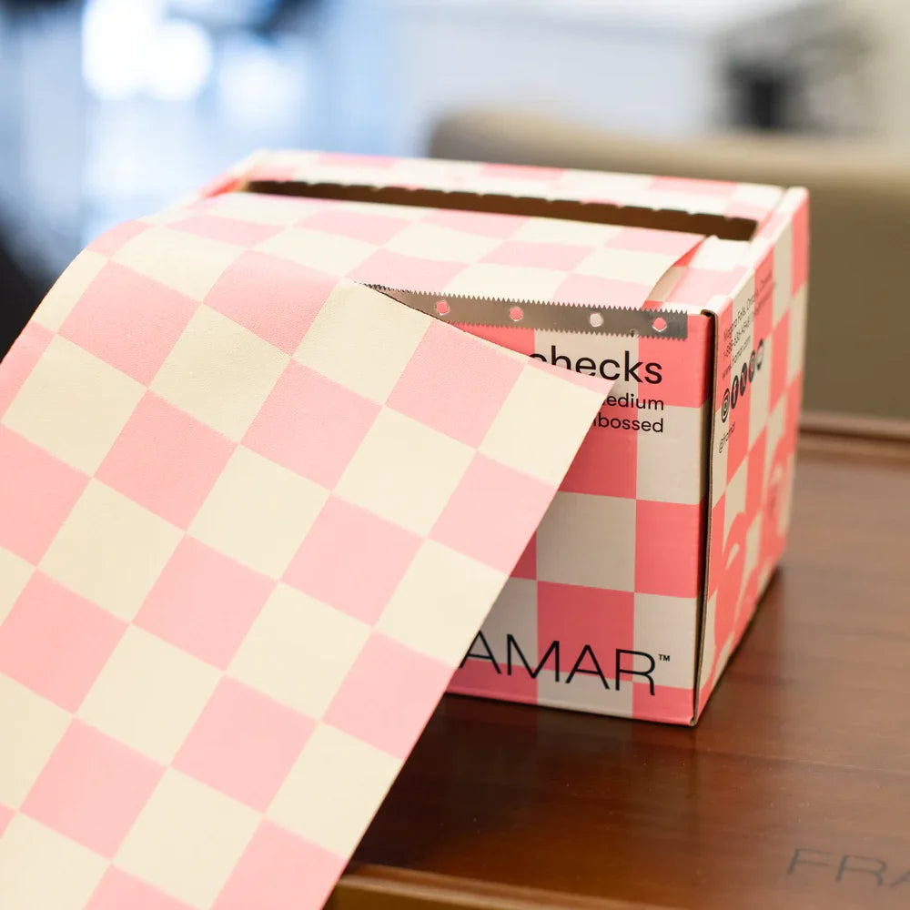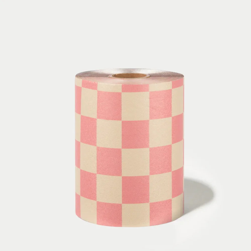 Tell me more: Say hello to your new foil obsession! This cream and pink checkered roll is the perfect mix of chic and playful.