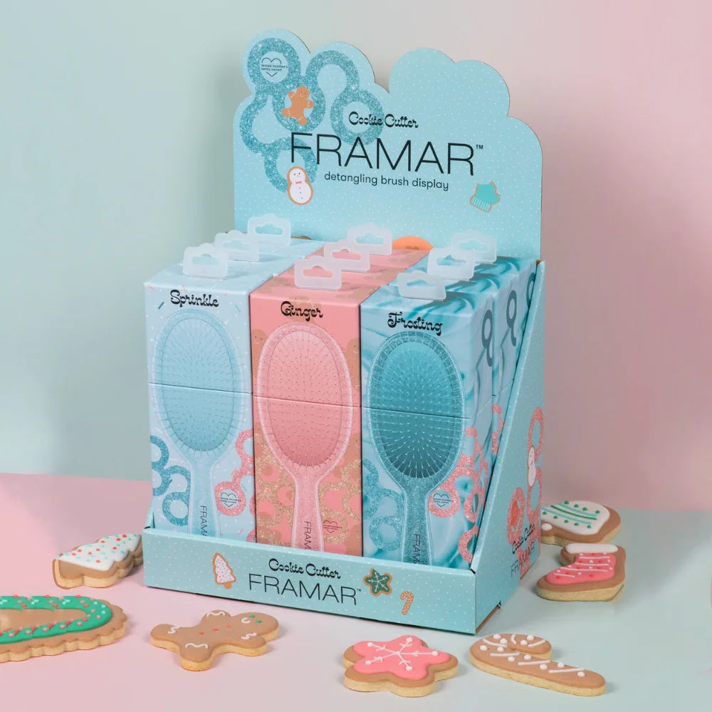 Tell me more: This 9 piece detangle brush display includes our Sprinkle, Frosting, and Ginger Detangle Brushes.