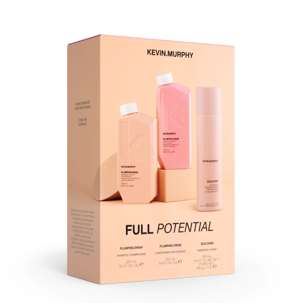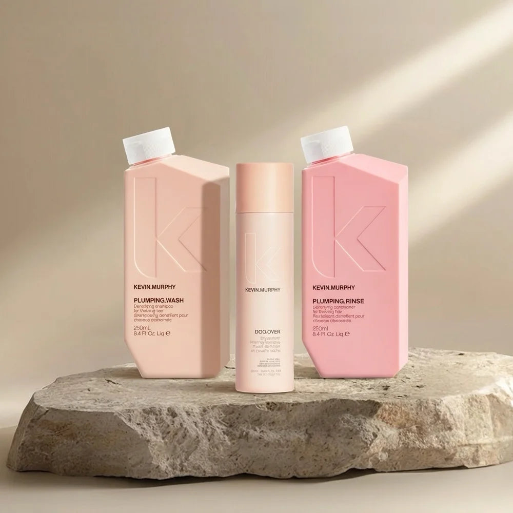 Prepacked drop-in box set: buy Plumping Wash 250ml and Plumping Rinse 250ml, get Doo Over Dry Powder Finish Hairspray 250ml FREE.