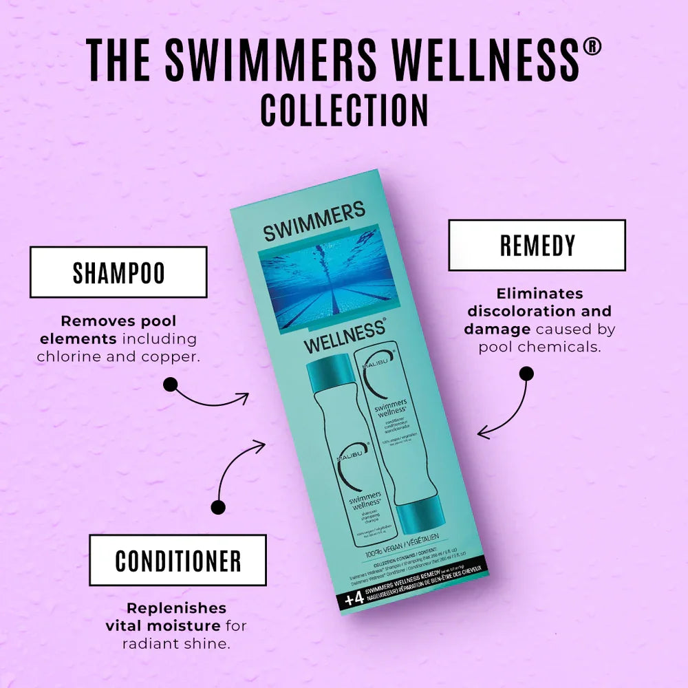 Stringy, tangled, discolored swimmers' hair? This exclusive system has everything you need to help remove chlorine, copper, and other pool elements while gently cleansing and conditioning. Reveal shinier, healthier, tangle-free locks! Bonus Wellness Remedies!