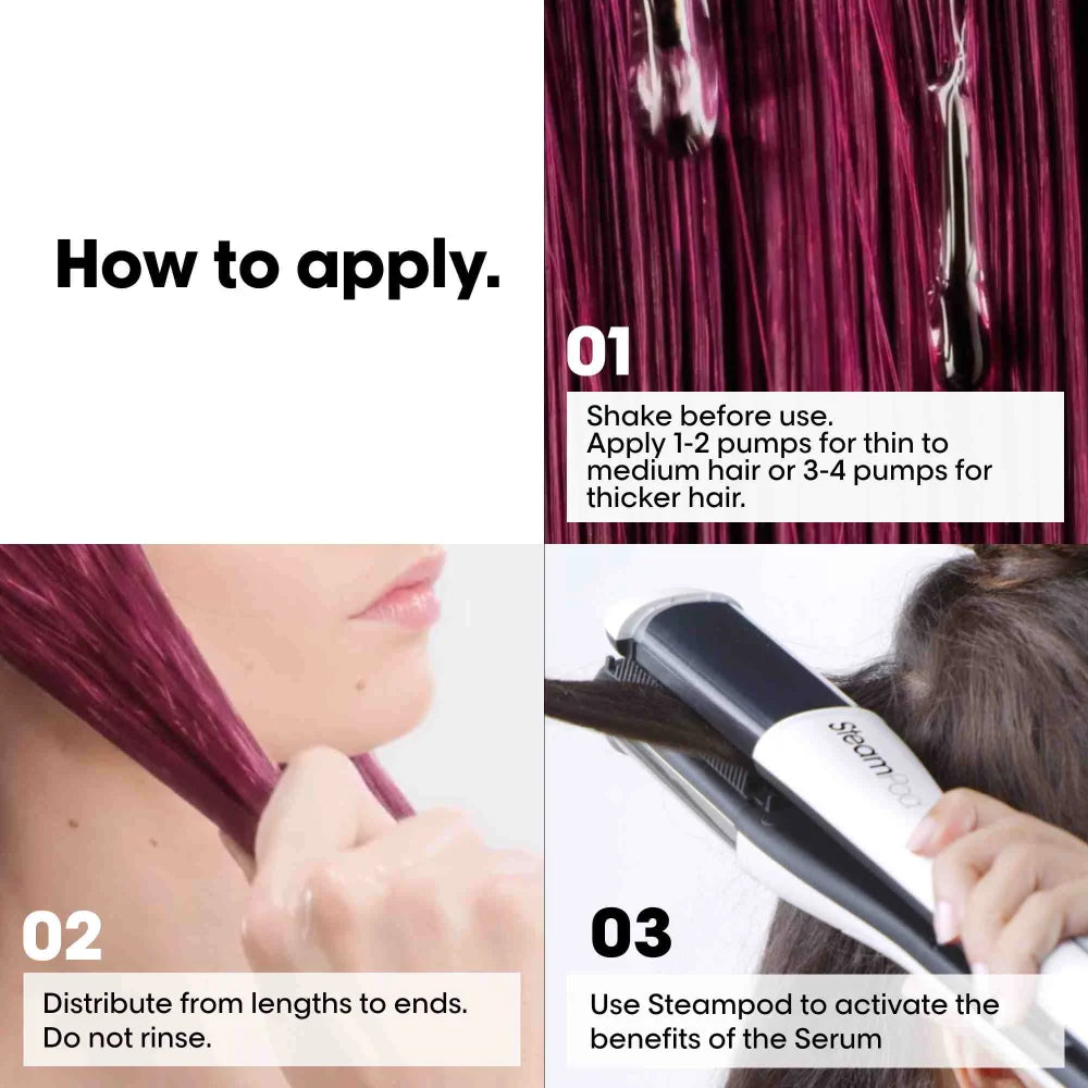 The serum has a liquid texture: do not apply more than one pump at a time and section the hair beforehand if necessary.