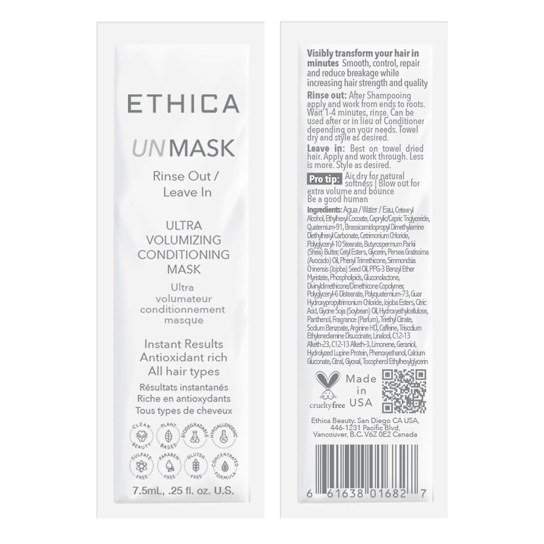This incredible next generation conditioning and repair benefits well beyond typical masks, but also incorporates classic Ethica core functions for healthy scalp, follicle, and hair support. As with other Ethica products, our UVHM individualizes its response to the end user, and is perfect for every hair type. Flexible application usages leave this mask in a new class all its own.