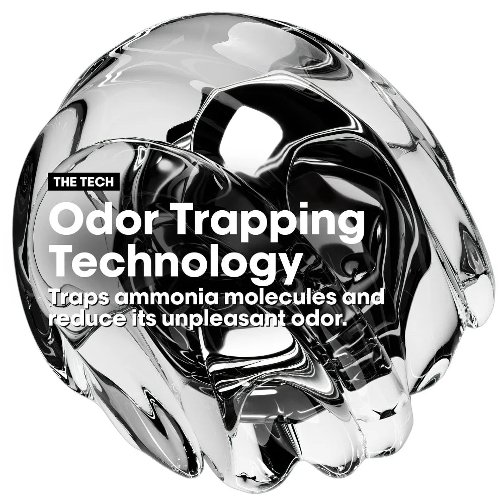 The Odour trapping technology enrobes the ammonia allowing it to work within the colour but to not evaporate meaning reduced smell making it a more sensorial experience for hairdresser and client.