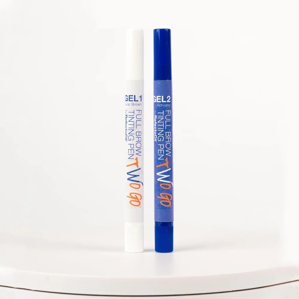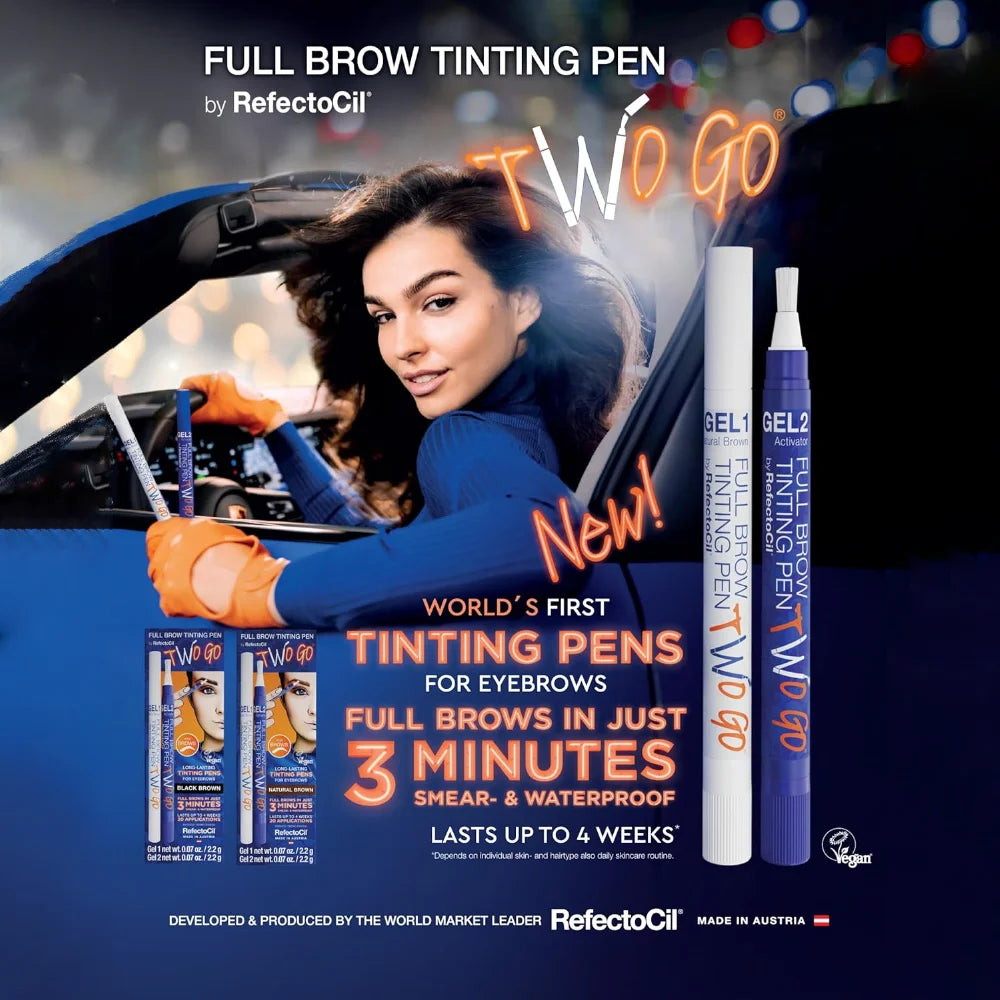 The Full Brow Tinting Pen TWO GO by RefectoCil® has made eyebrow tinting faster and easier than ever before. There's no more need for mixing because the color is applied consecutively in just two simple steps using the pens.