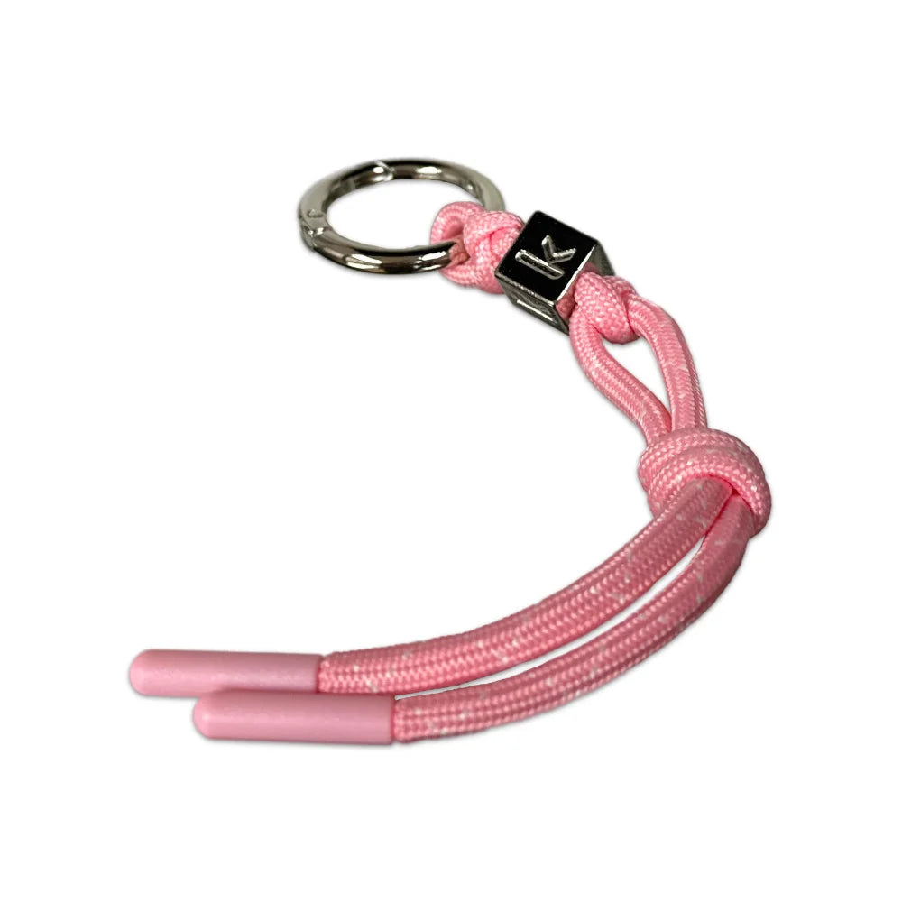 Tab into the trend of bag accessories with this elegant and fun KEVIN.MURPHY string keychain available in NIGHT.SHIFT or BODY.MASS color with silver hardware. Sleek and elegant way to add some fun and edge to your favourite bag or carry your keys in style. With debossed K charm for subtle yet impactful branding .
