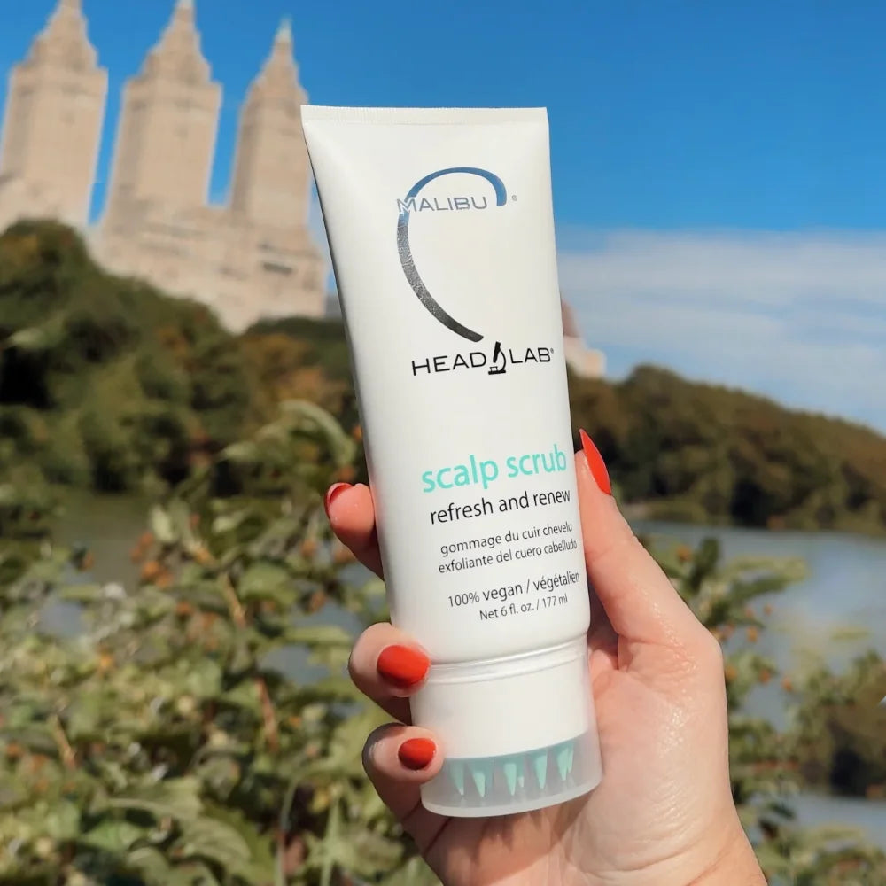 -- Malibu C Head Lab® Scalp Scrub is not intended to treat any medical conditions. Our formulation is made 100% drug-free and is instead made with natural ingredients like jojoba esters, activated charcoal to help exfoliate the scalp and tea tree, menthol, spearmint, and cayenne pepper to soothe and stimulate the scalp.