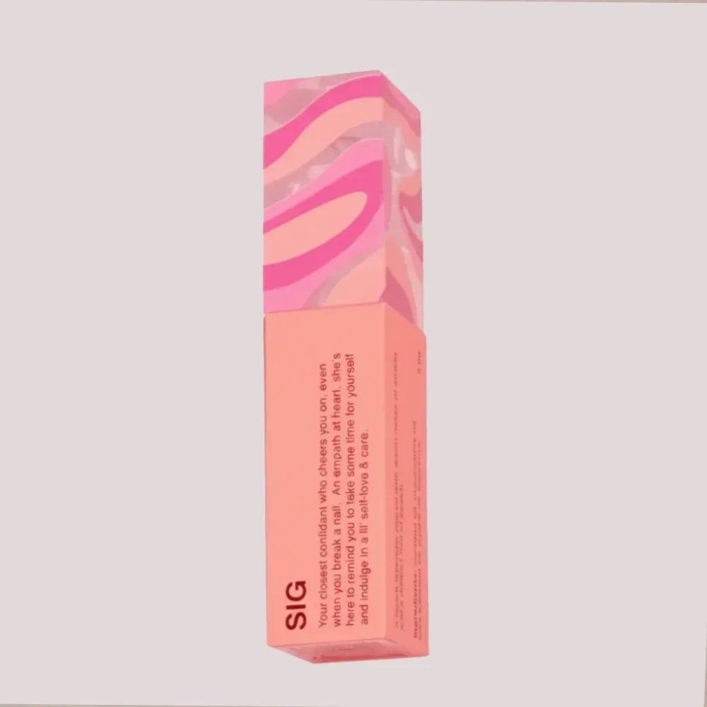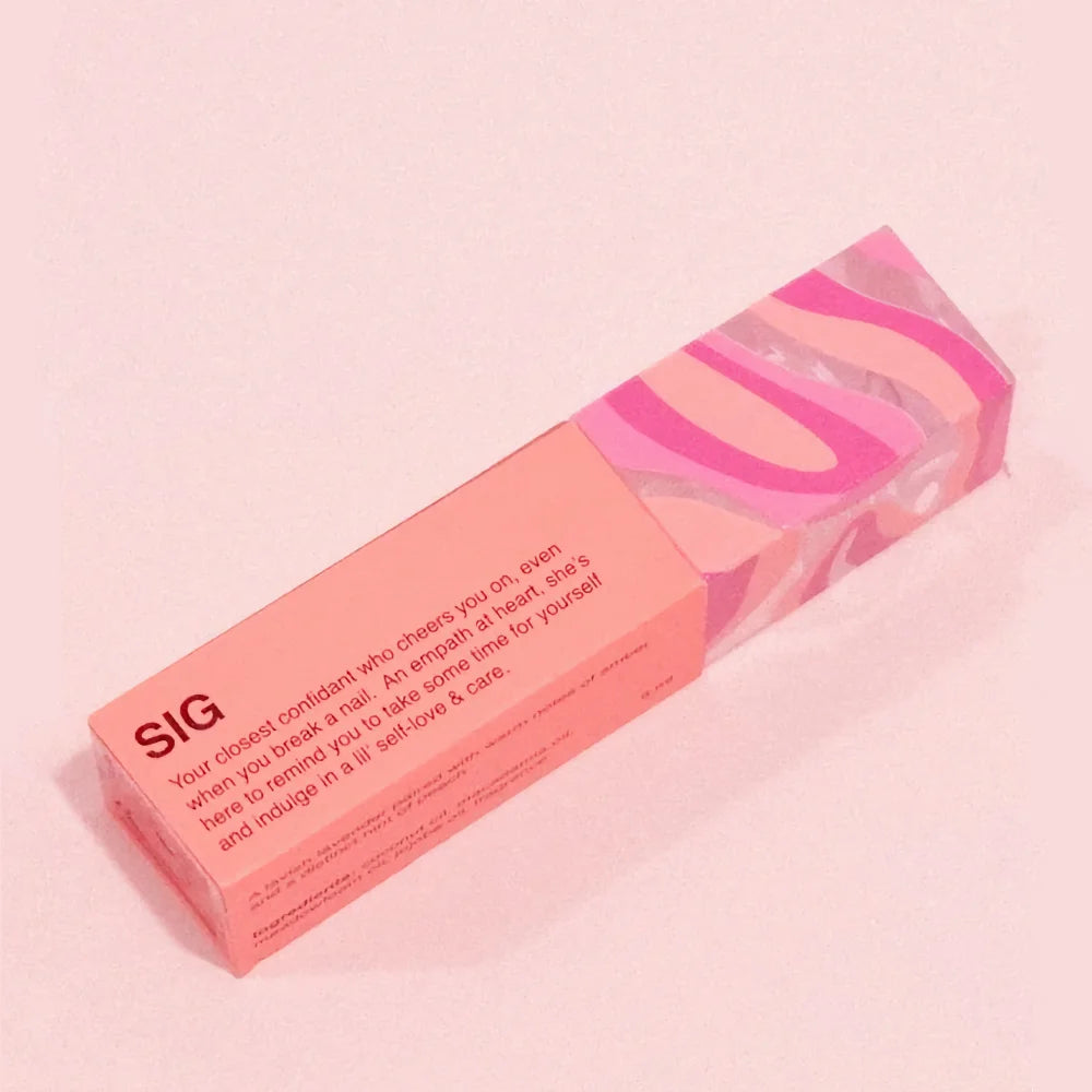 Introducing Sig - Peachy and sweet, she's here to support your self-care routine no matter where you go. Formulated in partnership with Sigourney Nuñez AKA @nailartbysig, Sig's natural ingredients work to moisturize your cuticles and maintain your manicure. Made for any and all nails, Sig is here to remind you to take time for yourself and indulge in a lil' self-love and care.