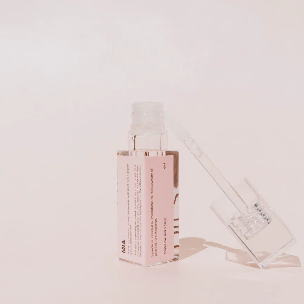 A mix of passionfruit and tangerine, with mid notes of pink peony and jasmine. Mia has a standing two week appointment that never gets moved or canceled. Can be very indecisive over the 5 neutrals in her rotation (including red, the other neutral). 6ml.