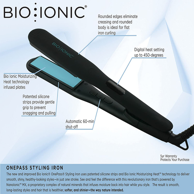 Moisturizing Heat™ Technology delivers smooth, shiny, healthy-looking styles—in just one stroke. See and feel the difference with this revolutionary iron that’s powered by NanoIonic™ MX, a proprietary complex of natural minerals that infuses moisture back into hair while you style. This Moisturizing Heat™ ensures strands stay smooth, hydrated, and frizz-free. The silicone speed strips deliver one-pass styling from root to tip by gently gripping the hair, rather than clamping hair in between the plates. This way you can smooth and straighten without pulling, snagging, or breaking strands.