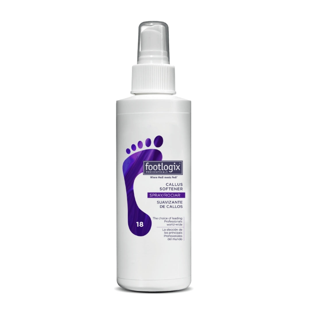 For Professional use only, Footlogiz Callus Softener spray-on formula provides an effective, instant softening treatment for calluses, toenails and cuticles, dry keratinized skin, hyperkeratosis and fissures/rhagades. This non-aggressive formula does not need to be washed off.