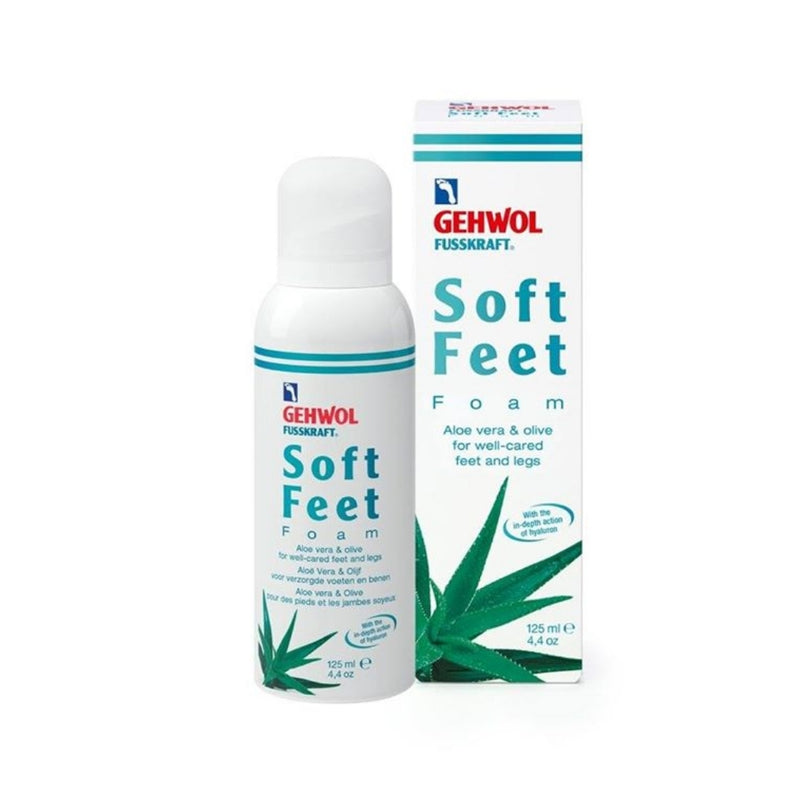 Soft Feet Foam with Aloe Vera and Olive oil for well-cared feet and legs. Fast absorbing, non-greasy moisturizing for normal to dry skin, leaves behind a pleasant skin sensation.